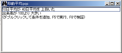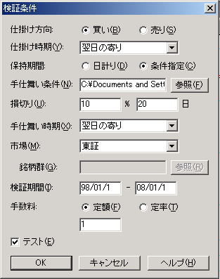 仕掛け条件を開いた状態で、キーボードの F8 を押して検証条件ダイアログ