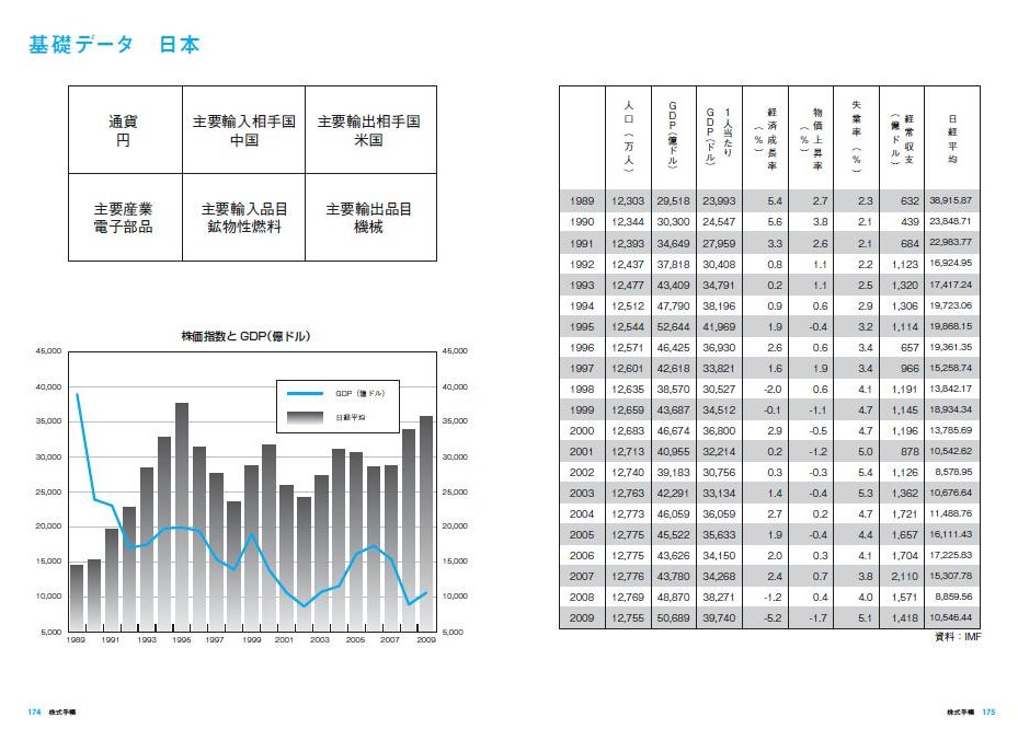 経常収支、GDPなどの基礎データに加え、時価総額TOP50などを掲載。