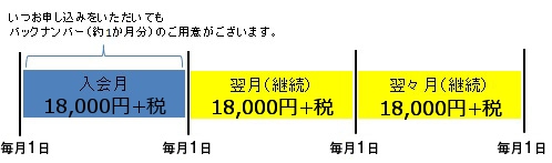 ※再入会は、当月から継続料金 18,000円+税 となります。