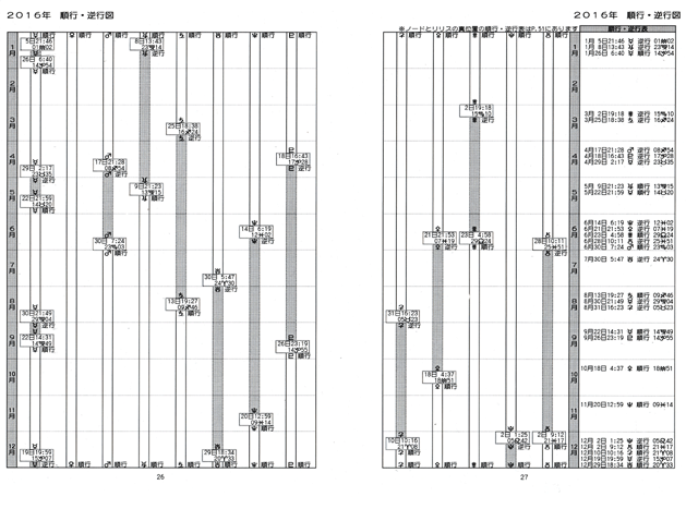 - 1年分の占星術に必要な各種天体データを日本標準時で表示。期間 : 2016年1月1日〜12月31日